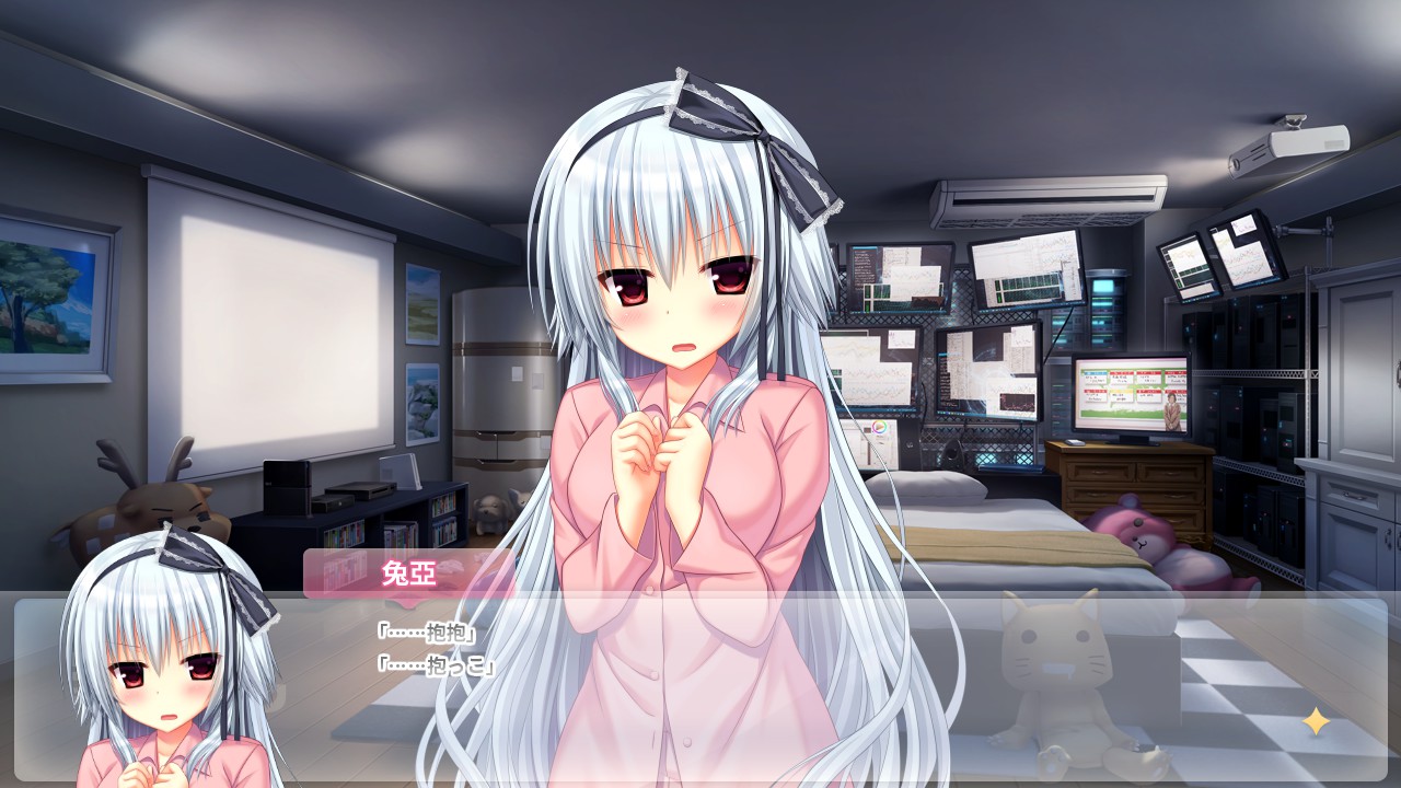 窗社早期作品,原本想玩常轨脱离Creative但不知道为什么就开始进行了考古,可能是兔亚太可爱惹。非常喜欢兔亚这种稍许有点小心眼的妹妹系角色,而且还是可爱白毛萝莉,也好想有个这样的妹妹疼爱一下(很馋兔亚房间里的一墙壁装满的服务器机架)。兔亚的cv是小松アン,声线有点慵懒,但处处透着撒娇般的可爱,是后藤麻衣的马甲,配有少女理论及其周边的梅丽尔、恋×シンアイ彼女的星奏以及后文永不枯萎的世界与终结之花里的雪菜。我觉得雪菜像是活泼更多的星奏,梅丽尔像是稳重更多的星奏,但兔亚的声线,完全听不出来有一丝星奏的味道,或许算是颓废风格的星奏(笑)?会长意外的可爱,有种稍大只的萝莉的感觉,声线反而比妹妹更像可爱粘人妹妹系角色,cv樱乃日和,是本多真梨子的马甲,配有学生会一存的樱野栗梦,这样一看不也是会长(笑)。整体剧情非常的废萌,生活总会需要一些这样的糖水,近几年柚子社的新作立绘都不是很喜欢,窗社是非常好的凭替。不过相比窗社最新作柚子奈老师的画风,我还是更喜欢宇都宫老师画风的萌感。居然25年年底出了Fan Disc的官中,补了票以后又可以和兔亚贴贴惹,好耶~